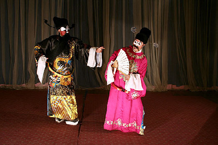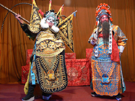 The painted faces also allow Chinese audiences to instantly be able to tell the personality of the characters on stage. The audiences have long accepted the traditional way of the facial pattern expression. Generally, the red face makeup refers to loyal and upright persons, the black face makeup refers to faithful and straightforward persons, the white face makeup refers to an imperious and treacherous person, the multi-colored face makeup refers to ghosts and gods and the white-colored face makeup between the eyes and nose refers to a clown’s face, which appears funny and humorous.