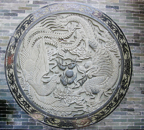 The dragon and phoenix were used to decorate painted pottery and jade carvings in primitive society. The founding of the unified empire in the Qin Dynasty (221-206 BC) provided a base and motivation to develop the ancient Chinese palace architecture. Stone carvings, engraved brick, bronze ware and lacquer paintings were growing quickly. For the first time, the dragon and phoenix were heavily used on imperial architecture, especially on the imperial palaces’ roofs, beams, pillars, and doors. Chinese architecture, as a kind of oriental art, has enveloped mystery with the decoration of the dragon and phoenix.