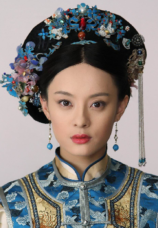 Notice there is a change in her hairstyle from the previous picture. The more complex the hairstyle was, the higher the status. A fringe was added to her headdress, making it even more flamboyant. She was loved by the Empire but she kept a low key look with jewelries like ruby and pearls. Flowers were also used as decoration in her hair. The picture below shows one of the quintessence Chinese culture-diancui (Combining traditional metal and feather crafts, kingfisher feathers were inlayed in the gold or gold-painted pedestal to make various jewelry.). This technique is gradually dying nowadays.