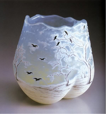 The raw materials of glassware are silicates and its metallic oxides which abundantly exist in nature. After melting under high temperature they are made into sticks of different sizes and then softened on light before being handmade into final products. Unlike glaze, Liuli artwork has no mould, each one being unique as craftsmen’s improvised work. In comparison with glass, Liuli artwork has a lower melting point thus making it more colorful. Perfect glassware comes from not only good skills but also luck.