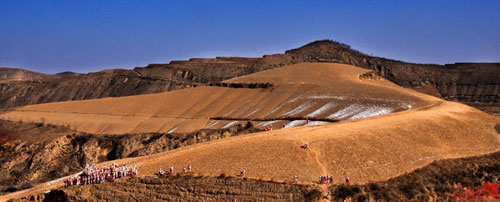 Actors perform waist drum dance on the Loess Plateau. (Chinapic.people.com.cn)