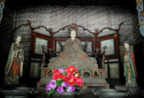 Photo taken on May 24, 2013 shows colored sculptures at the Shengmu Dian (Hall of the Saint Mother) of Jinci Temple in Taiyuan, capital of north China's Shanxi Province. Jinci Temple was first built during the period of the Northern Wei (386-534) in commemoration of Shuyu, the second son of Emperor Wuwang of the Zhou dynasty (1100-771 BC). Shengmu Dian is the principal hall in the temple, built to honor the mother of Shuyu, featuring 42 various sculptures of maids. (Xinhua/Yan Yan)
