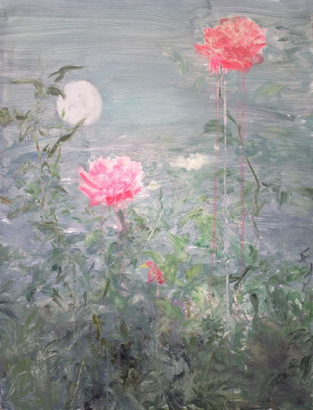 In He Duoling's paintings of flowers, he explores the application of Chinese ink-painting techniques to oils.