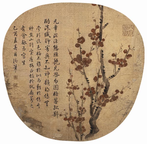 A fan decorated with plum blossoms made during the Qing Dynasty (1644-1911) by Chinese ancient emperor Qianlong, 24×25 cm. (China Daily)