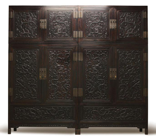 1. A large pair of zitan compound cabinets set the auction record for Chinese antique furniture with a price of 93.15 million yuan ($15 million) at the Poly International Auction on June 4.
