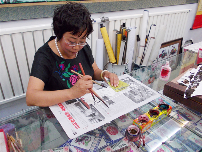 A craftsman is making paper-cut at the 4th Chinese paper-cut art festival in Wei county, Hebei province. The festival was held July 8-10 and featured works from over 360 folk artists around China. [Photo by Tang Zhe/China Daily]