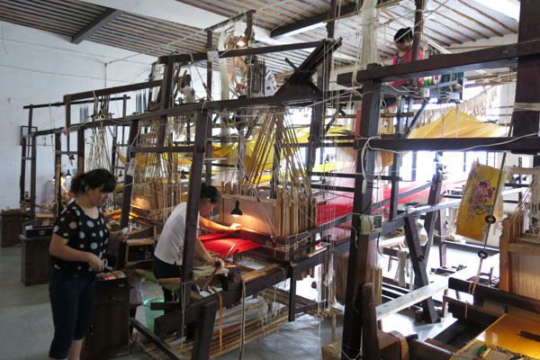 Operating each loom requires two people with great patience and skill. Li Yao / China Daily