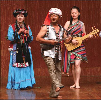 Artists from Nujiang perform various musical instruments.[Photo/Shanghai Daily]