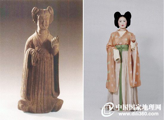 When the figurine of a maid from the Sui Dynasty was restored, people were amazed at the beauty of its dress and colors. As shown in the pictures, wearing a small round silk collar undergarment, a long-sleeve coat, a long skirt and a broadband, the maid looks so fabulous even though her clothes are colorless. According to historical data, women in the Sui Dynasty preferred light colors.
