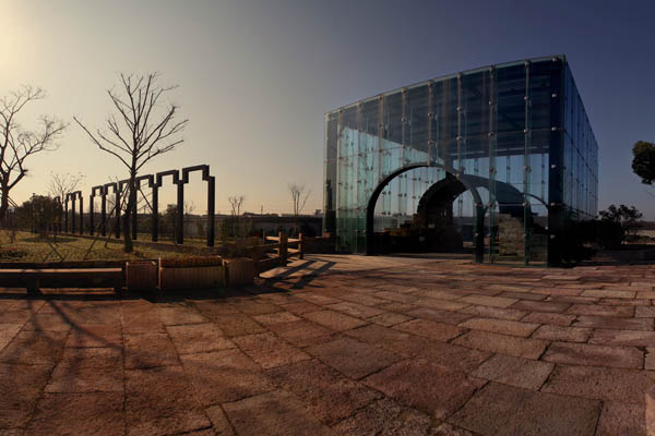 The problem was solved with a modern touch. The original frame of the east gate is shaped out by glass while the inner structure is made of stone. The "city walls" are sketched out by black trusses, evoking the memory of the city walls without hindering modern transportation.