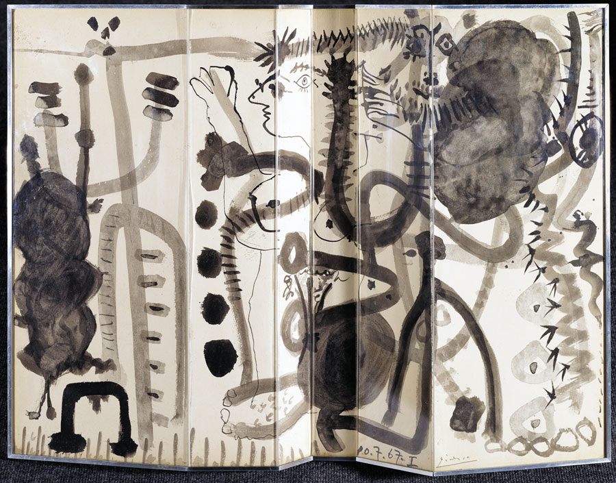 Like most of Picasso's work, naked women dominate in this picture. The woman in the middle turns to the left, raising her arms as if soliciting for help. The sound boxes and the naked woman form a symbolic unity. There is obvious a chaos on the right side, probably provoked by the monster forcing himself on the woman. In a new form of three dimensions, it proves the objectiveness and versatility of the artist.[Photo provided to chinadaily.com.cn]