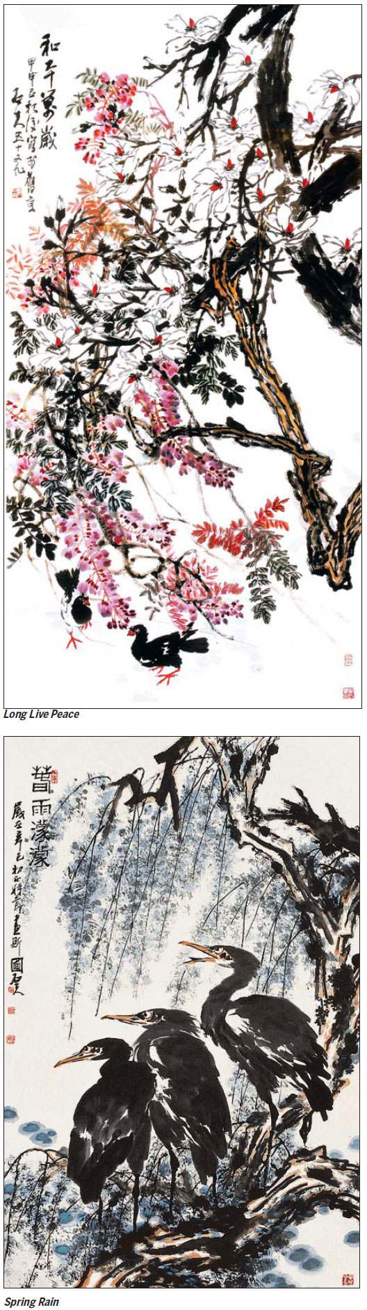 Often about birds, flowers, insects, fishes, bamboo, orchids and other natural subjects, his paintings are grand and majestic - not only in size, but also in artistic conception.