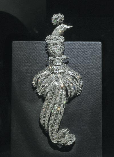 There are two phoenixes in the exhibition. One is this Bird of Paradise brooch (pictured) created by Cartier, which is shown for the first time. What I love is what Liaoning Provincial Museum found in their treasures, a Chinese phoenix in jade. Jade means wealth, power for the emperor. It is two things in one dialogue, using the same symbol in China and France. These two pieces show that we are different but universal. We also want to express love and friendship, search for luck, happiness, and power from the phoenix. It is like a bridge between two cultures.
