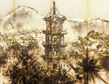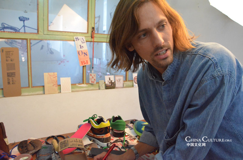 Designer Sander Wassink displays his shoe creations. Sander is an artist and designer who encourages others to reconsider their ideas of beauty and aesthetic values. He turns his attention to the discarded, the abandoned, and the left over, and reimagines what can be done with what is already partially formed. He is able to discover new possibilities that exist in the surfaces and materials that are half-built or half-destroyed. Whether his work is a partly demolished facade of an abandoned building, or the everyday detritus from an over productive culture, Wassink asks what new forms and new visions of beauty already exist that can be discovered and appreciated. [photo by Yang Qi/chinaculture.org]