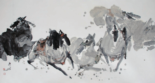 In addition to horse painting, Qi is also a master of mural and oil painting.