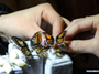 Craftsmen work on creating Dongba engravings in Lijiang Old Town in Yunnan province, Nov 7, 2013. Based on legends and folk stories of Dongba culture, craftsmen in Lijiang fuse ancient Dongba pictographs with modern elements in the engravings to attract young customers. There are now hundreds of workshops making the wood engraving products featuring various sizes and patterns. [Photo/Xinhua]