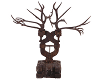 This painting provides a close view of crowds of rocks and grass, together with a few buildings scattered on the flat ground. People from different social classes gather in the house, while dogs and chickens hang around outside, together showing the liveliness of daily life.