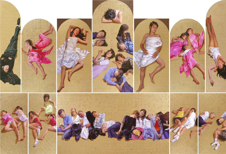 Acrylic & gold leaf on canvas, 418x600cm, 2011, by Yu Hong. [Photo provided to China Daily]