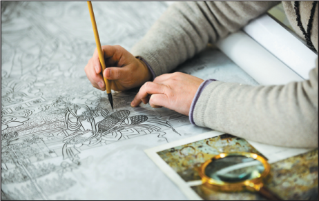 From her first day working in the studio, Yang was determined to learn the line drawing techniques and calligraphy style of the Dunhuang murals.
