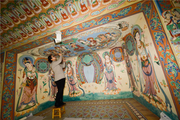 They selected the murals in the two caves because they are among the best representatives of the Tang Dynasty grotto murals. "The murals in the two caves well reflected the characteristics of that era and visitors to the replica murals can learn something about the history and enjoy the art. We duplicated the murals because the two grottoes were not open to the public," Yang says.