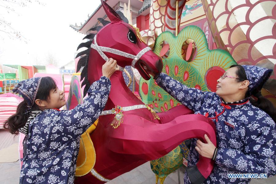 A horse-shaped lantern is made to greet the upcoming Chinese lunar new year, the Year of Horse, in Weifang city of east China's Shandong province, Jan. 15, 2014. (Xinhua/Zhang Chi)