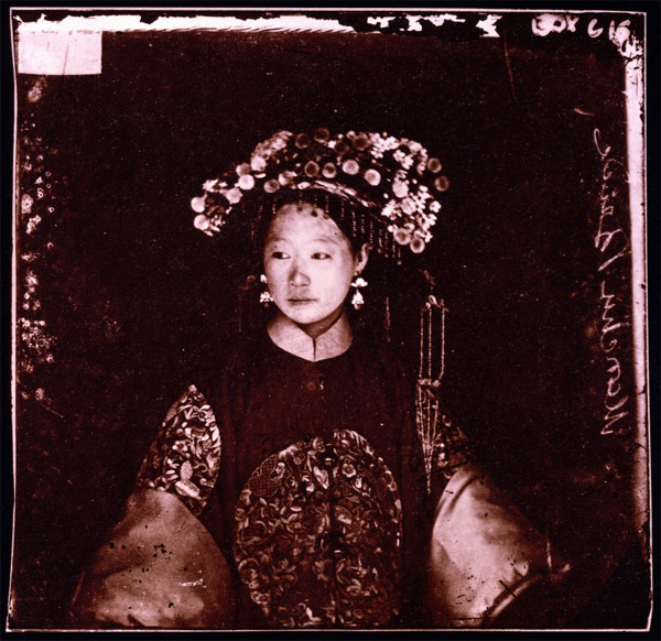 A Thomson photograph captures a young Manchu bride in Peking (Beijing).