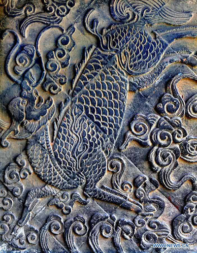 Photo taken on May 24, 2010 shows the stone relief of a Qilin, an auspicious beast in Chinese mythology, at the Anguo Temple in Licun Township of Shanxian County, central China's Henan Province. A large number of architectural sculptures have been preserved in historical sites of Henan, which is one of the cradles of the Chinese civilization. Many of the sculptures, created from stones, bricks, or wood, were used as building parts of residences, shrines and memorial archways, among other architecture types. Underlining both the mood and the details, these sculptures have themes including daily life, legends, myths and opera scenes. (Xinhua/Wang Song)