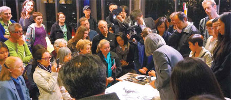 Huo shows his freehand brushwork to the audience at the University of Sydney.