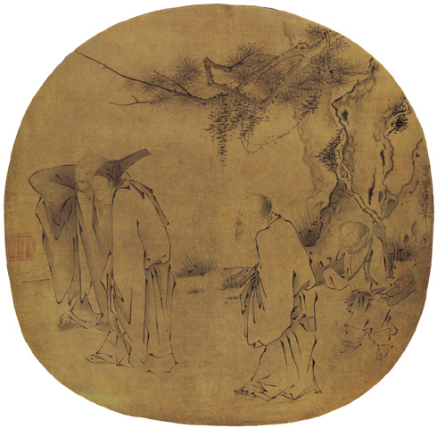 Fan Painting by Liang Kai,Three Hermits' Tour, Song Dynasty(960-1279).[Photo/86art.net]