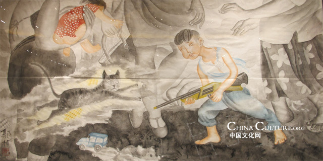 A: Although I used too much Chinese ink to depict the distortion of the figures in my works, they can better fell what you want to express. They would try their best to know you and you works. I put some ideas form my deep heart into some of my works, and they reflected my deep feelings. As most of my works reflected my own feelings they were closely connected to my life. Therefore, if you want to understand the connotation in my paintings, you’d better understand me first.
