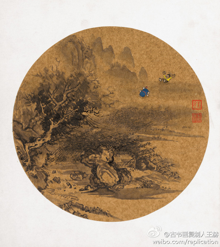 Wang He, a young painter at the Palace Museum who is proficient at copying ancient calligraphy and paintings, created a series of paintings, letting Doraemon and Nobita, main characters of the famous Japanese cartoon Doraemon, traveling through time to ancient Chinese paintings. The hilarious has gone viral online, reminding numbers of Doraemon fans of their childhood. (Photo source: Sina Weibo)