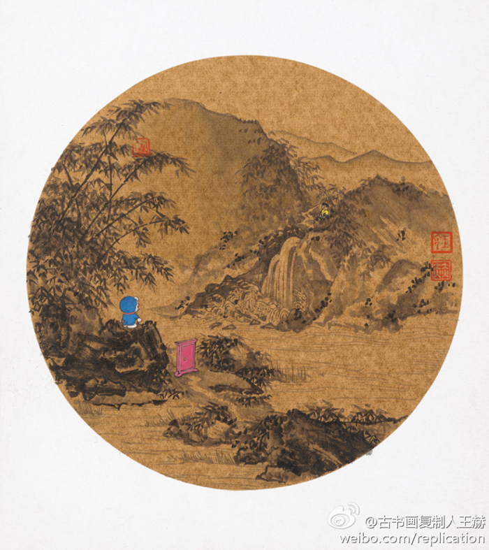 Wang He, a young painter at the Palace Museum who is proficient at copying ancient calligraphy and paintings, created a series of paintings, letting Doraemon and Nobita, main characters of the famous Japanese cartoon Doraemon, traveling through time to ancient Chinese paintings. The hilarious has gone viral online, reminding numbers of Doraemon fans of their childhood. (Photo source: Sina Weibo)