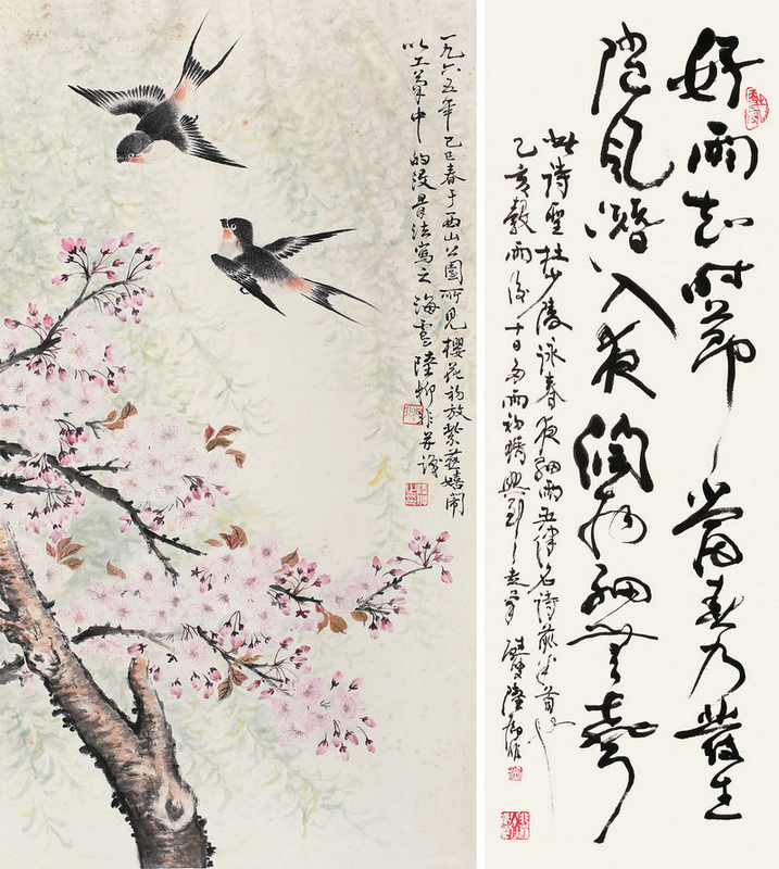 Swallow and Flowers, Calligraphy artist: Lu Yifei (1908-1997)