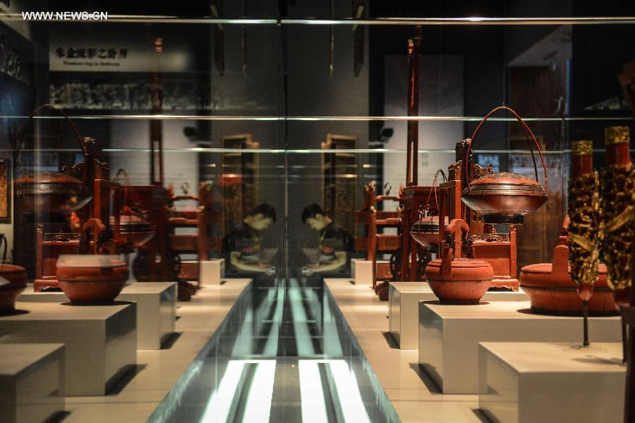 Photo taken on Oct. 16, 2014 shows woodcarvings at the China Woodcarving Museum in Dongyang, East China's Zhejiang province. The museum will officially open to the public on Oct. 18.[Photo/Xinhua]