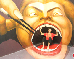 A sculptor from Australia works on a sculpture at the international wood carving contest in Dongyang city, Zhejiang province, Oct 16, 2014. [Photo/Xinhua]