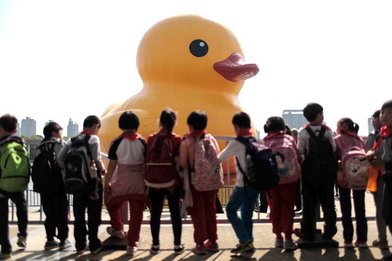 Visitors take in the yellow rubber duck at Century Park in Shanghai, Oct 23rd.