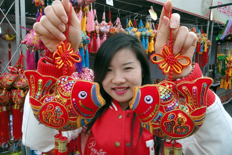 A visitor shows decorative art bought at the 8th China Folk Handicrafts Festival, Suzhou, Nov 2.[Photo by Wang Jiankang/asianewsphoto.com]