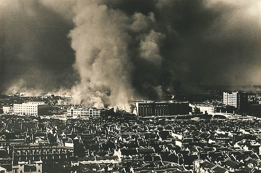 The Defense of Sihang Warehouse during the Battle of Shanghai, photo taken by Lyon. [Photo/ english.cguardian.com]