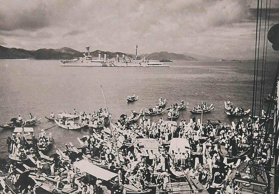 Refugees in the Bund of Shanghai during the Battle of Shanghai, photo taken by Lyon. [Photo/ english.cguardian.com]