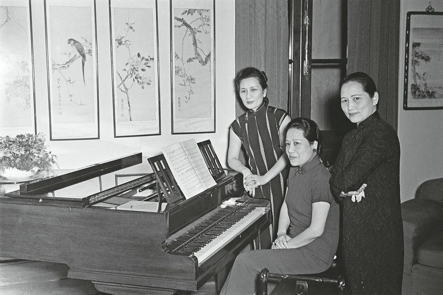 Photograph of the Soong sisters by a piano in 1940, taken by Lyon [Photo/ english.cgaurdian.com]