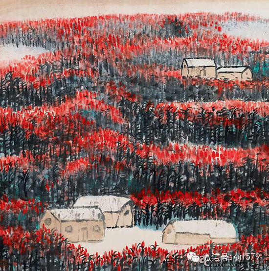 Red sorghum painted by artist Qiao Hong. [Photo/Contemporary Oil Painting]