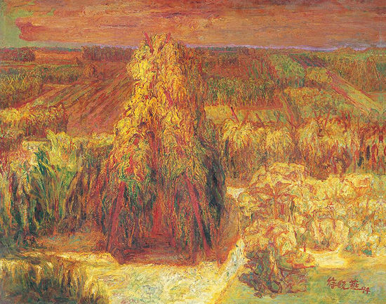 Red sorghum painted by artist Xu Xiaoyan. [Photo/Contemporary Oil Painting]