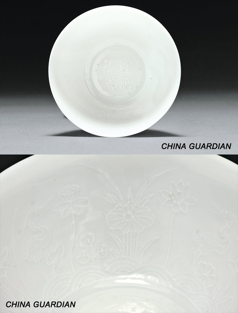 A White-Glazed Anhua-Decorated ‘Flower’ Cup [Photo/ english.cguardian.com] |