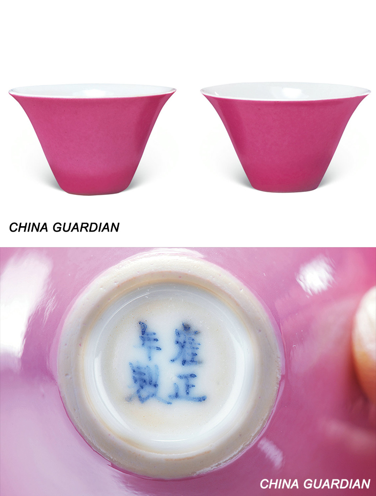 Red glazed ware, originating in the Qing Dynasty, is created through a difficult process. The color of the cups above, called ’rouge red’, was a typical color during the era of Yongzheng Imperial porcelain.