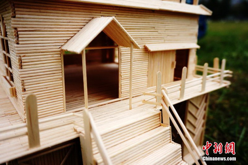 At a design contest held by SCU Jinjiang College, Wei Shuang, Zhang Yayi, and Huang Peiheng - three sophomores of the Engineering Cost major - designed and built a delicate villa with 4,000 sticks, which became the most popular piece of work at the contest.