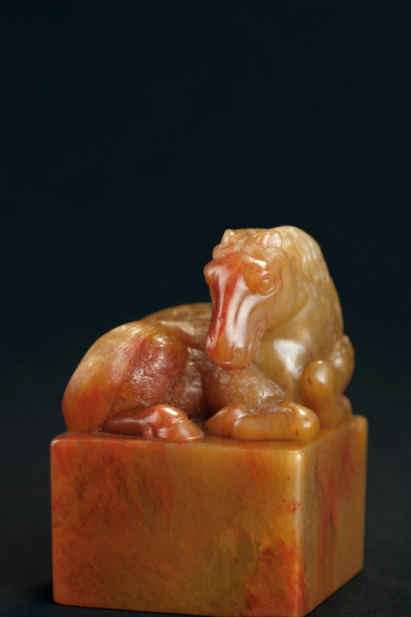A Shoushan stone seal with a horse knob, Qing Dynasty Kangxi Emperor, sold for 20,700,000 yuan at the China Guardian 2014 Spring Auctions. [Photo/ english.cguardian.com]