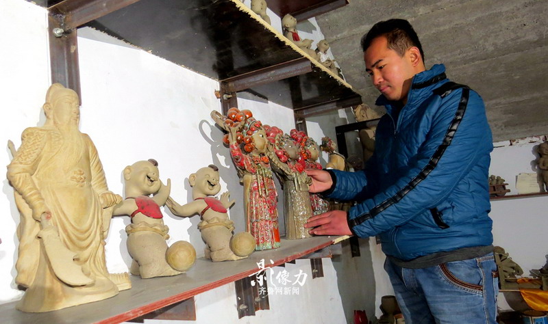 Zhao Jianyong and his artworks.[Photo/iqilu. com]