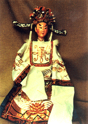 In modern times, a number of puppeteers have distinguished themselves with their superb art of manipulation and the design of movements of their puppets. Zhang Xiuyin was famous for his character Lady White in The White Snake, Xie Zhenxiang for his Wu Yuan in A Contest at Tongguan Pass, and Huang Yique for his young Buddhist novice in Flooding the JinshanTemple.