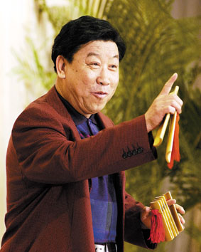 The impromptu clapping instruments differ according to the types of melody. For instance, the Shandong kuaishu performer holds two small crescent-shaped bronze pieces in one hand, the manipulation of which is called yuanyangban. For shulaibao, a kind of clapper ballad, or kuathen, two pairs of bamboo clapping instruments are used, a big pair and a small pair, the former composed of two bamboo pieces, the latter, of five pieces. The pieces are held together by string.