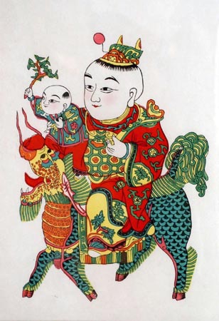 New Year's Wood Block Paintings are a type of picture pasted on walls and doors duringSpring Festival, the most important traditional Chinese festival. In the past, as the Spring Festival approached, every family would clean its rooms and courtyards and paste New Year's Wood Block Paintings on the windows, doors, walls and stoves and in the Buddha niches to add to the New Year atmosphere, and at the same time, to seek good luck in the coming year.